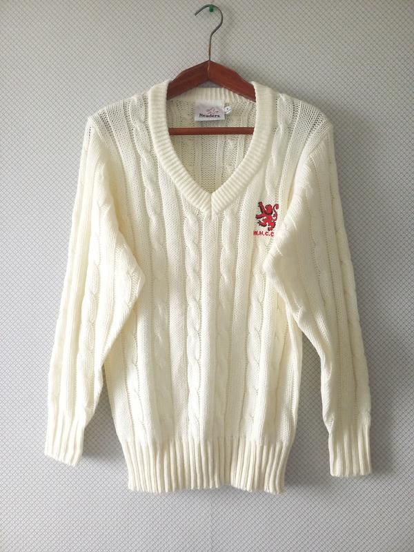 Чоловічий пуловер, джемпер молочного кольору в коси. V-подібний виріз. Стан нової речі. Розмір по бірці S. Заміри: під руками - 49см, плечі - 39см, довжина - 69см, рукав - 62см.