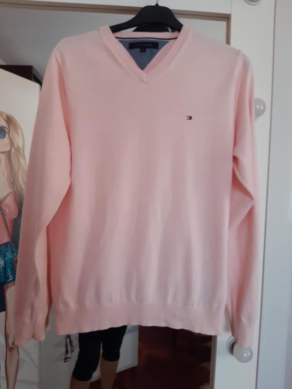 Ніжно-рожевий чоловічий світшот (пуловер) бренду Tommy Hilfiger в хорошому стані. 100% котон. Спинка - 39см, довжина по спинці - 67см, ширина - під рукавами 51см, донизу (резинка) 40см, рукав - 64см.