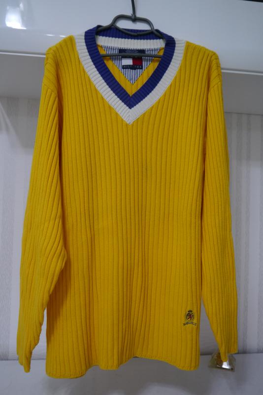 Чоловічий оригінальний пуловер tommy hilfiger Розмір виробника XL Тканина - 100% котон Заміри: Ширина в плечах - 50 ширина під рукавами - 54х2 ширина - 52 довжина рукава від плеча - 63 довжина - 72 По ширині може розтягуватися по фігурі, так як дизайн плетіння резинка. Стан - ближче до нового. Дивіться інші мої товари 24