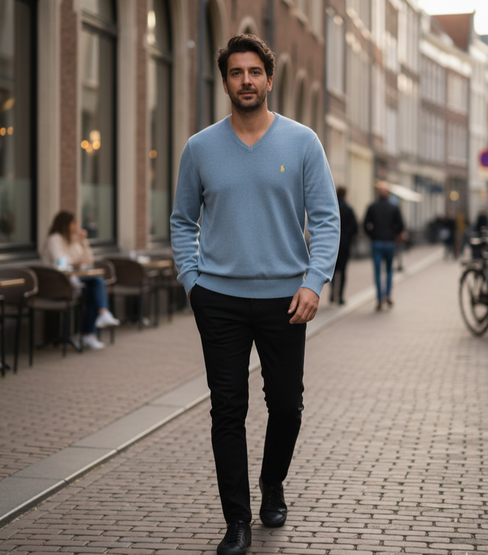 Чоловічий блакитний пуловер polo by ralph lauren