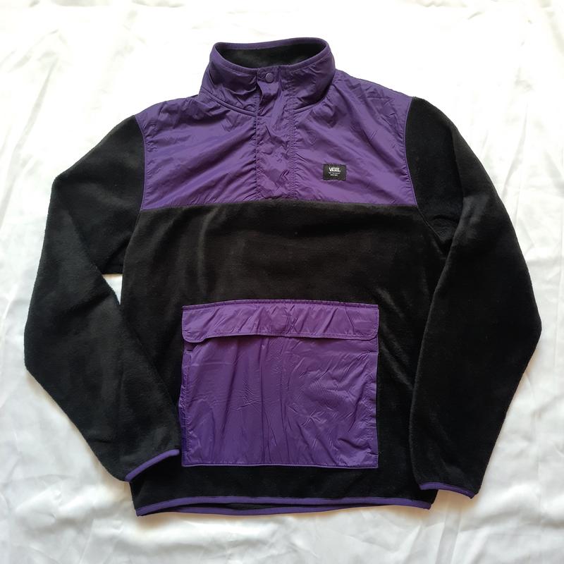 Пуловер Vans Mammoth – это мягкий флисовый пуловер с имитацией горловины и молнией на четверть. Он имеет цветные блоки на нижней части тела и рукавах, а также контрастный накладной карман спереди. Логотип Vans расположен на левой стороне груди, куртка имеет свободный крой. Размер С Замеры: длина 68 см щирина 56 см длина рукава от плеча 67 см ширина плеч 46 см Стан - идеальный