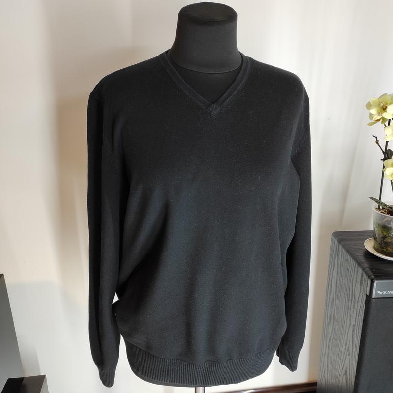 Мужской хлопковый плотный черный пуловер свитер от Esprit Цвет не выстираный. Дефектов нету. длина-67см, пог-54см, плечи-43см, рукав-62см ткань 86% хлопок, 12% полиамид, 2% эластан Размер М-Л.