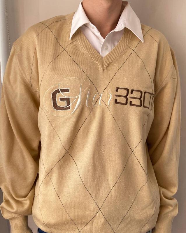 Чоловічий светр від бренду G-Star.Колір бежевий.Розмір XL(48/50р).Модель іде без горла.Спереду надписи-логотип фірми.Ззаду однотонний.Рукава довгі з манжетом. Склад:80%кашемир,20%еластан.