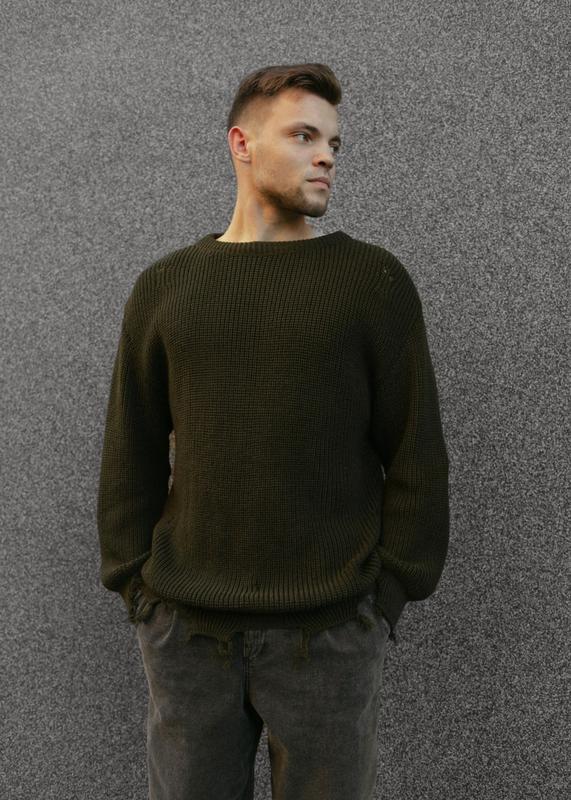 Розміри: S-M, L-XL В'язаний светр Основна тканина: 50% бавовна, 50% поліестер Має оверсайз крій; подовжений рукав.