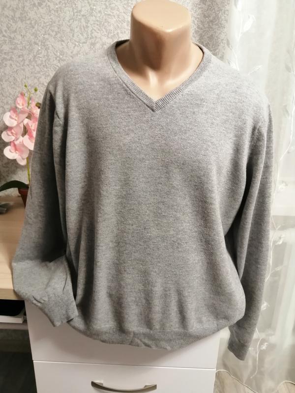 Чоловічий сірий светр,розміром L Склад 90% шерсть та 10% кашеміру. Якість відмінна, м'якенький, теплий, гарно тягнеться. Маде ін China. В ідеальному стані, заміри на фото.