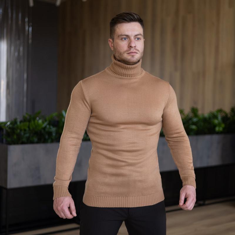 Светр під горло Pobedov "Axelrod" (Фсв00008) бежевий ▫️Відмінний чоловічий светр-гольф. ▫️ Матеріал: турецька пряжа 70% шерсть, 30% акрил ▫️Приталена модель. ▫️Має подвійну горловину, фасон - з відворотом, під горло. ▫️Дуже зручний, приємний до тіла. ▫️Зносостійкий і практичний - не кошлатиться при перших носіннях. ▫️Витриманий стиль, класичний крій і лаконічний дизайн светра не залишать ваш образ непоміченим, а приємний до тіла склад пряжі зігріє прохолодними вечорами. ▫️Розміри: S M L XL ХХL