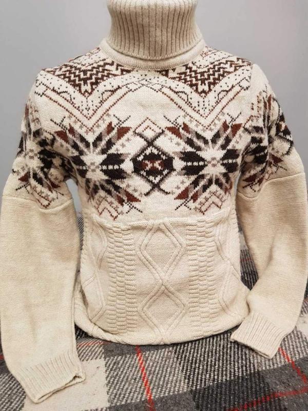 Теплий светр з горловиною. Гарний принт. В наявності є розміром М та Л.