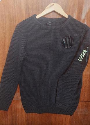 Класний стильний светр від CHAPTER.Пише що підлітковий але також піде на дорослий S-М. Стан нового,на рукаві кешеня на блискавці. Дивіться заміри. Довж-64; Підмиш-52; Плечі-40; Рукав-59: