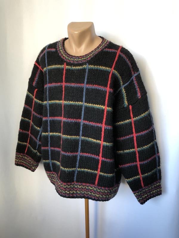 Светр чиста шерсть товстий теплий чорний в клітинку картатий дуже красивий теплючий вінтаж...