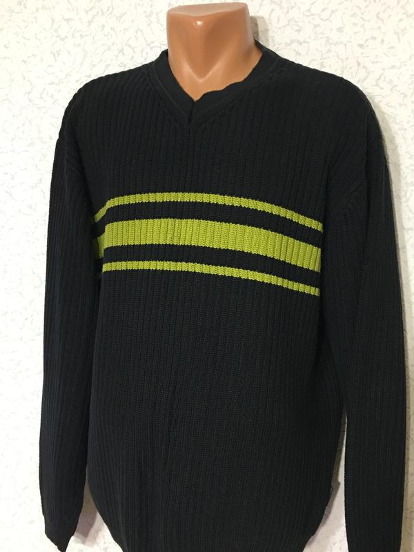 Джемпер мужской ESPRITз крупной вязки чорного кольору із салатовою смугою, 100% бавовна, розмір XL, імпортний. Довжина рукава — 65 см. Обсяг грудей 130-138 см. Довжина по спині — 68 см.