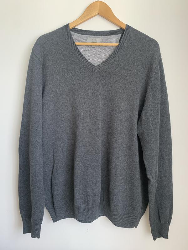 100% котон Манжети не розтягнені, дефектів немає Розмір Л, великомірить підійде й на Хл Колір темно сірий (на фото виглядає світлішим ніж є насправді)
