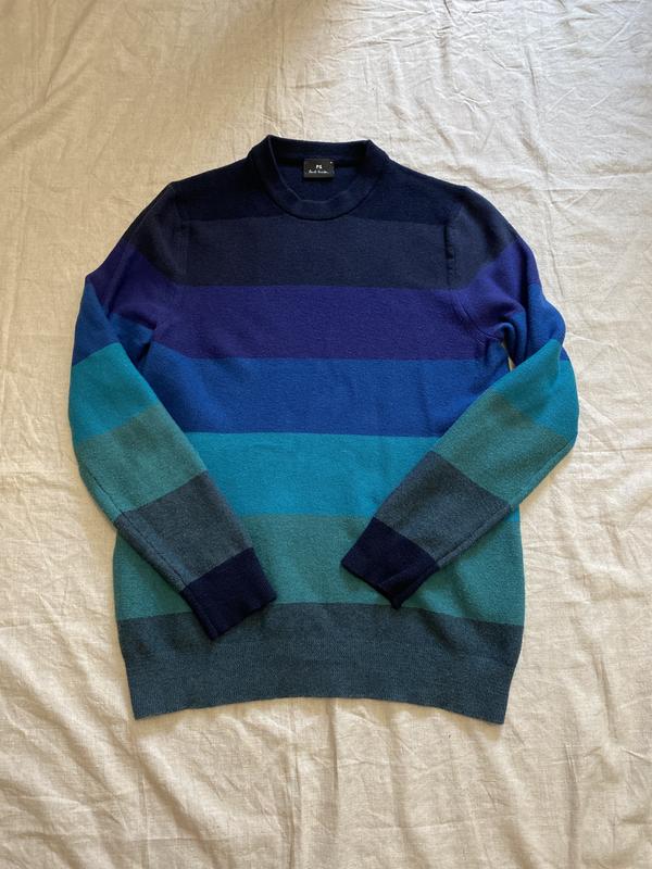 Світер в смужку від Paul Smith. Стан дуже гарний. Розмір М. Плечі 39, груди 48 і рукав 64. Дивіться ще мої оголошення.