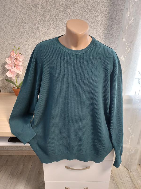 Чоловічий светр з 100% котону, розміром 3XL, темно бірюзового (бутилочного) кольору .В ідеальному стані, гарно тягнеться, приємний до тіла.Усі заміри на фото. Маде ін Бангладеш.