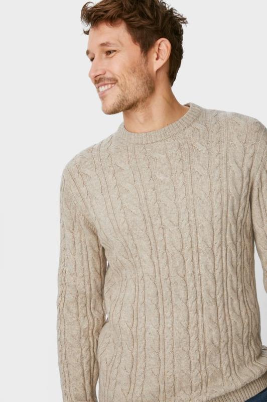 Стильний чоловічий светр у бежевих тонах з оригінальною в´язкою для елегантної фігури. Освіжаючий дизайн та міцні деталі: комір, манжети та нижній край зроблені із в´язаної гумки, зберігаючи форму навіть після прання. Склад: 55% бавовна, 5% шерсть, 40% поліестер. Практичність та стиль в одному! Розмір M, 2XL Виміри розміру M: Довжина виробу - 71 Ширина у грудях (під рукавами) - 50 Довжина рукава від горловини - 81 Ширина низу - 40-50 Виміри розміру 2XL: Довжина виробу - 74 Ширина у грудях (під рукавами) - 69 Довжина рукава - 70 Довжина рукава від горловини - 86