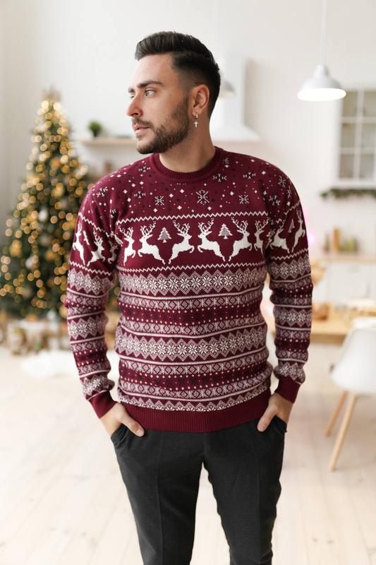 ❄️ Новорічний светр з оленями 🦌 Матеріал: 70% вовна, 30% акрил (не колеться, дуже приємний до тіла) Колір: бордовий, темно-синій, джинс, білий, червоний Розміри: М, Л, ХЛ, ХХЛ ✅️ Вигідно замовляти два светри зі знижкою