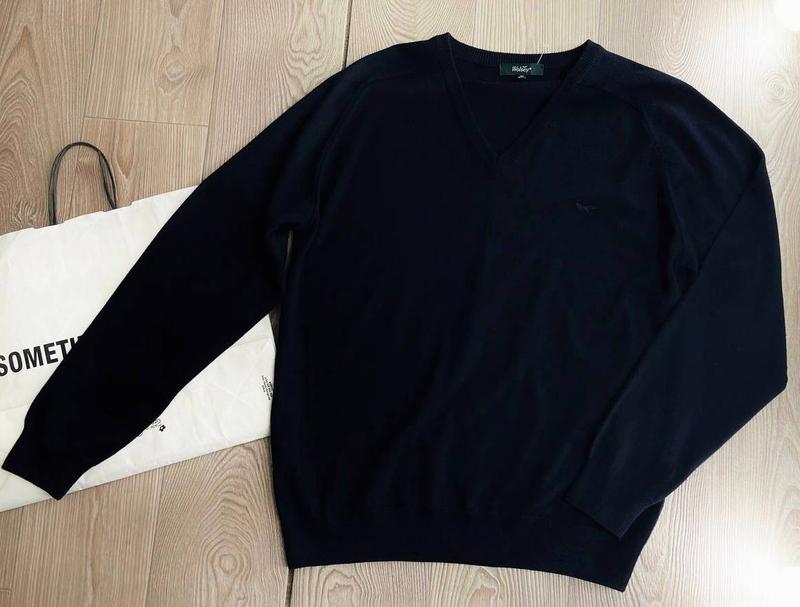 Джемпер чоловічий темно-синього кольору WALSEY🛍❤️🔥😍😍😍 Розмір — UK 10/EUR 38/M/44-46. Склад: 50% вовна,50% акрил. Виробництво Латвія. Светр із тонкого вовняного трикотажу. Трикутний виріз переду горловини з неширокою рещинкою краю. На грудях вишивка-логотип ТМ. Рукав-реглан і низ із трикотажною гумкою. Гарної якості. Тонкий і теплий. Додаткові виміри: повна довжина 70 см (з них висота гумки 6 см), рукав-реглан (замір від лінії горловини до краю манжети) 80 см (з них висота манжети 6 см), напівобхват грудей 60 см ( повний обхват 120 см), напівобхват талії 56 см (повна обхват 112 см), напівобхват гумки стегон 48 см (повний обхват 96 см) і потягнеться до 120 см.