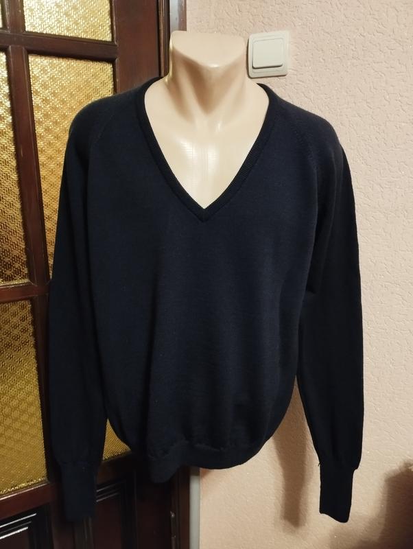 Светер чоловічий дуже гарної якості,теплий на розмір L 48розмір. 80%натуральна шерсть,20%,нейлон. Колір темно-синій насичений. Якісна в'язка середньої щільності,приємний на дотик. У-подібний виріз горловини,на сорочку. Якісні манжети. Рукава закладаються на манжет. Стан відмінний,нової речі,без дефектів та слідів ношення. Крій рукавів регланом. Заміри:довжина рукава від горловини-80см. Пог-54см. Ширина по низу манжета светра-37см. Довжина по спинці-68см. Без торгу.