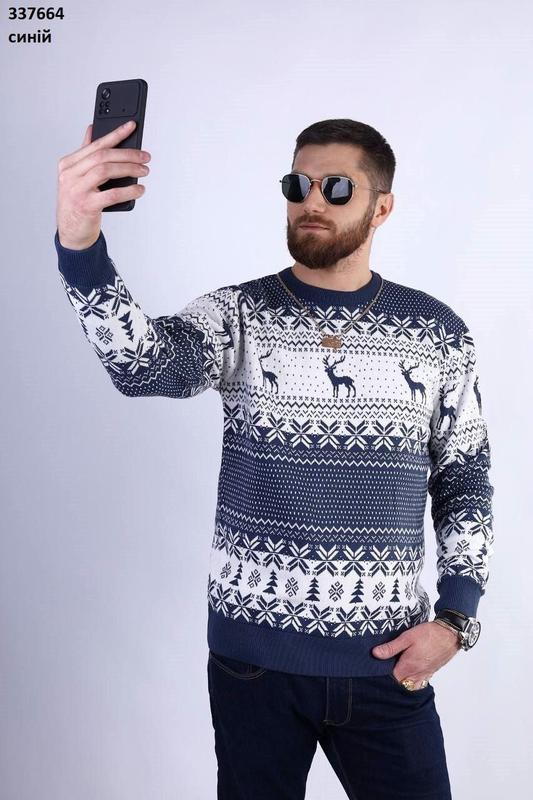 Свитер мужской🦌 🌈Кольори: Синий 🏷Материал: легкая мягкая вязка 🌀Размеры: L (48-50)❌ XL (50-52) XXL (52-54) Замеры на фото! На модели р.L