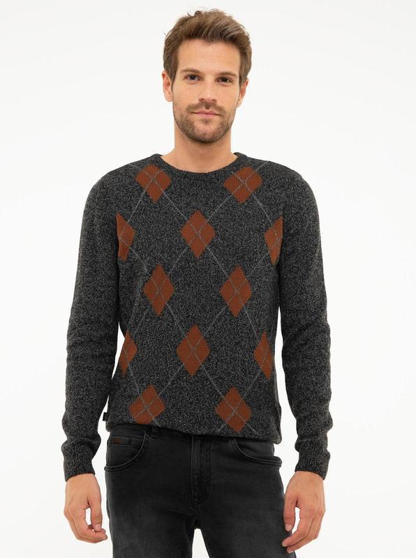 Шикарний светр сірого кольору в ромбик pierre cardin made in turkey, 💯 оригінал