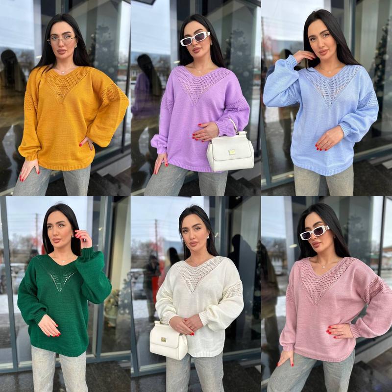 🔥ХІТ СЕЗОНУ🔥 Весняний светрик Модель 5047 Склад: 30% акрил; 70% вовна. 🧶🐏 На дотик дуже тоненький та приємний до тіла Кольори: ізумрудний, блакитний, гірчичний, пудра, бузок, молоко Заміри: - довжина рукава 70 см від горловини з плечем. - довжина виробу 65 см. - ширина 58-65см.