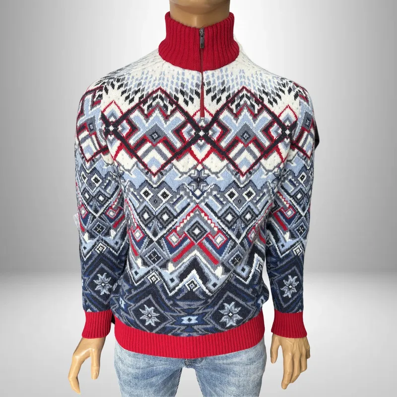 Этот мужской свитер от бренда PULLTONIC в красном цвете с новогодним узором и воротником-стойкой станет прекрасным выбором для зимнего сезона. Изготовленный в Турции, он объединяет в себе высокое качество и стильный дизайн. Составленный из качественной смеси материалов, включая 68% шерсти, 17% кашемира, 12% акрила и 3% лайкры, этот свитер обеспечивает тепло, мягкость и прочность. Прямой фасон делает его универсальным и комфортным, а воротник-стойка придает изделию изысканный вид и обеспечивает дополнительную защиту от холода. Новогодний узор добавляет свитеру праздничное настроение и делает его отличным выбором для зимних праздников. Этот свитер идеально подойдет как для повседневного использования, так и для особых случаев в праздничный сезон. Он легко сочетается с различными стилями одежды и станет незаменимым элементом вашего гардероба в холодные дни зимы. Модель: Т 230-496 Артикул: SV0014 Цвет - красный Состав - 68% шерсть, 17% кашемир, 12% акрил, 3% лайкра Сезон - зима Узор - новогодний Фасон - прямой Страна производитель - Турция Воротник - стойка