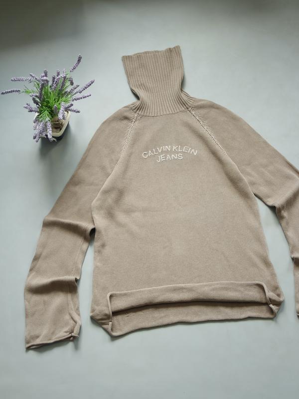 Calvin klein jeans vintage оверсайз в'язаний светр з високим горлом бежевий коричневий кел...