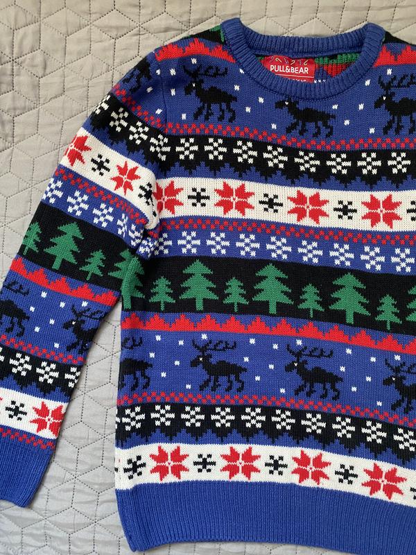 Чоловій светр з різдвяної колекції, носили 2 рази, в ідеальному стані, підійде для худенького чоловіка, або підлітка. При бажанні для жінки, принт унісекс. 💙Розмір S. Довжина 63 см, ширина півобхват 47см, рукав 60 см.
