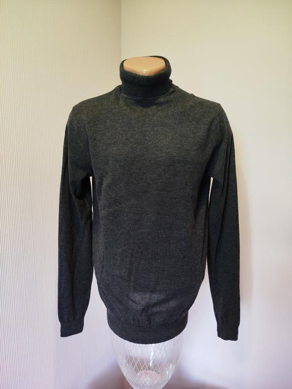 Свитер под горло,от бренда Ted Baker, серого цвета. Очень мягкий и приятный на ощупь, состав мериносовая шерсть и кашемир. Размер подойдет на S,M. Качество очень красивое!