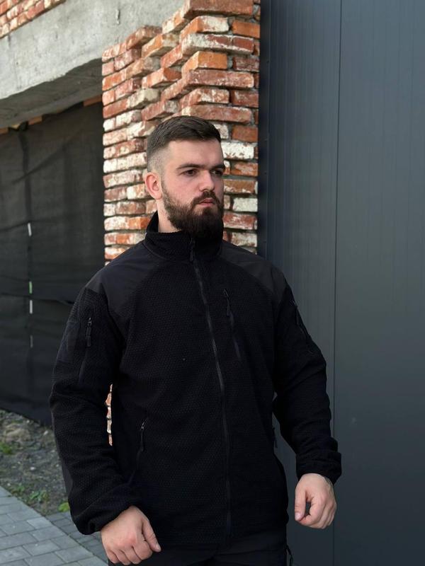 Кофта фліс чорна GEN ІІ Дві бічні нижні кишені, одна нагрудна кишеня типу «Наполеон» з отвором для шнура – закриваються блискавками з зручними хватами Дві нарукавні кишені на блискавках ID Velcro-панелі на нарукавних кишенях Манжети на гумці Низ виробу регулюється шоккордом з фіксаторами Блискавки YKK® Розміри: S-3xl