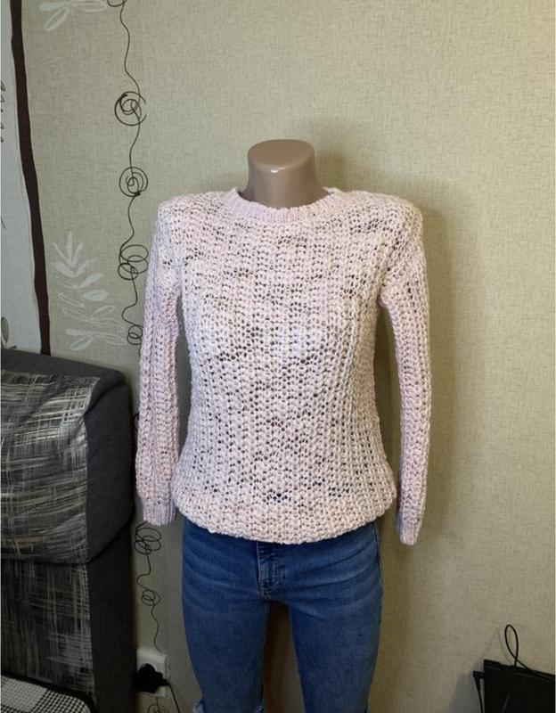 Длина 53, ОГ 42-55. Цвет нежный, приятный материал, сзади замочек, чтобы удобно надевать и не растягивать шею.