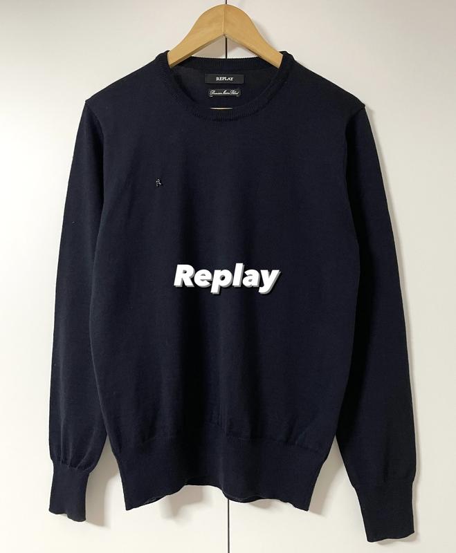 Чоловічий светрик від Replay. 50% преміум шерсть Розмір невеличка М Пог 50 см + тягнеться, рукав 65 см, довжина 65 см Колір темно синій Стан ідеал