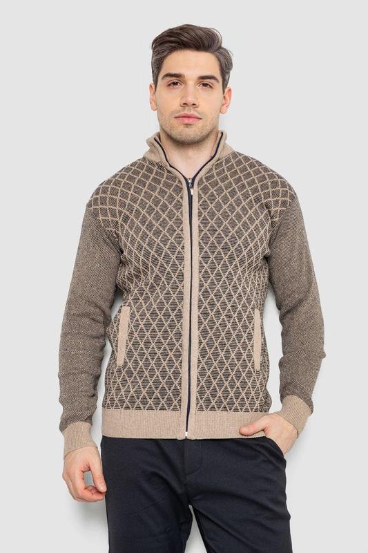 Кофта чоловіча на блискавці з кишенями 161r1053, колір бежевий, 161r1013
