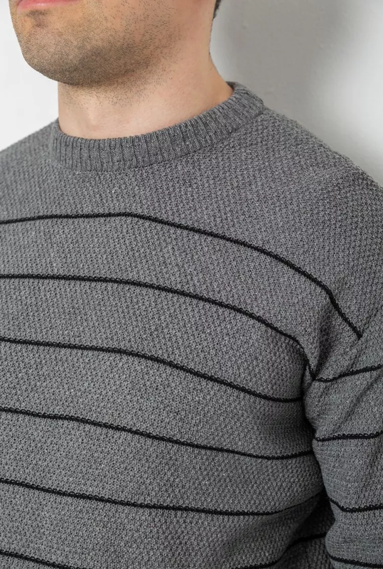 Светр чоловічий в смужку, колір сірий, 161r1057
