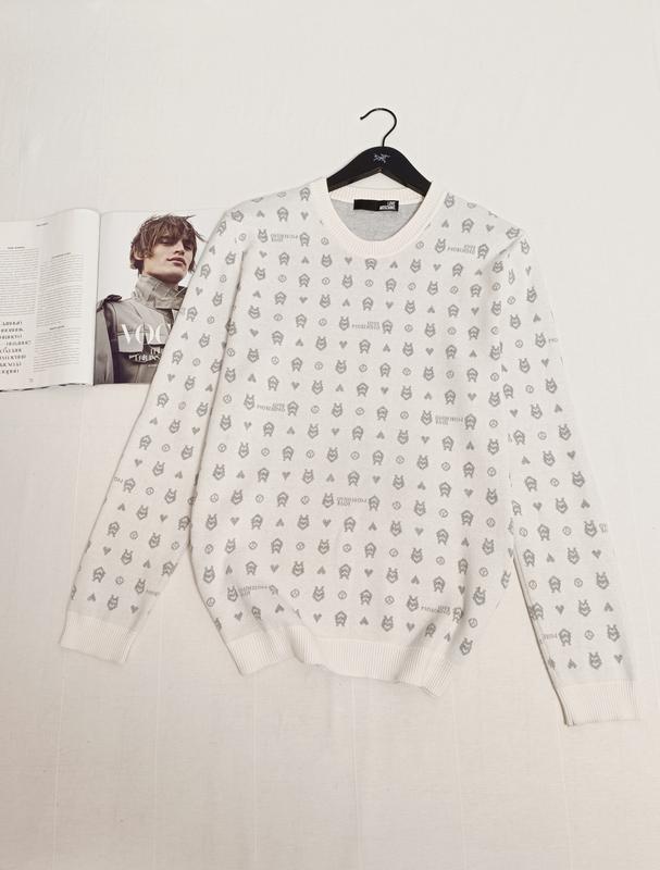 светр в принт від Moschino вільного крою, розмір L, тканина котон, ПО грудей 57 см, довжина 73 см, рукав 71 см