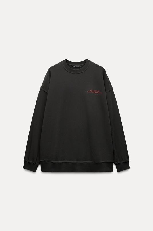 Світшот зі 100%-ї штапельної бавовни з круглим коміром і довгими рукавами. Контрастний напис та окантовка в рубчик по краях. Темно-сірий |
