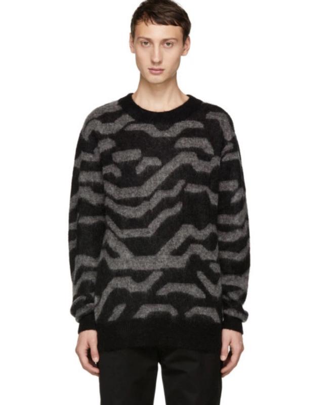 Жаккардовий светр з довгим рукавом і мохеровою сумішшю з графічним візерунком у чорно-сірих тонах. Манжети та низ коміра з круглим вирізом у рубчик. Заміри Пог від 53 Рукав від шиї 82 Довжина 67