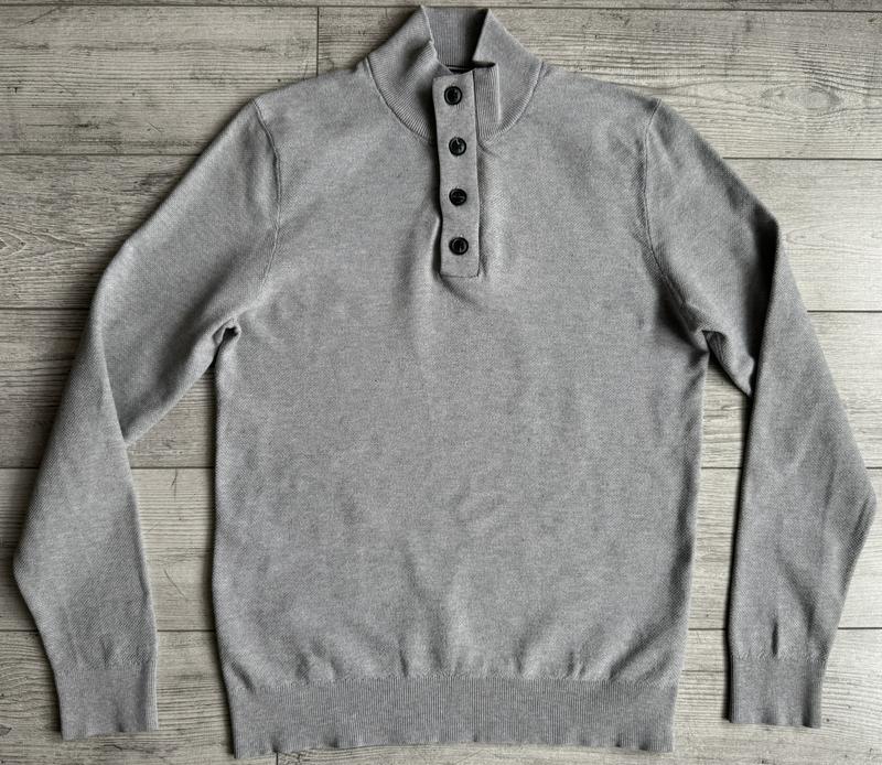 Чудовий светрик на четвертній змійці та гудзиках від відомого бренду, лого на лівому рукаві, брендовані гудзики та змійка, красиве тоненьке плетіння, м’який та приємний на дотик, класно виглядає на тілі Ідеальний стан Розмір L (маломірить на М) заміри: груди 52, довжина 66, плечі 41, довжина рукава від плеча 68