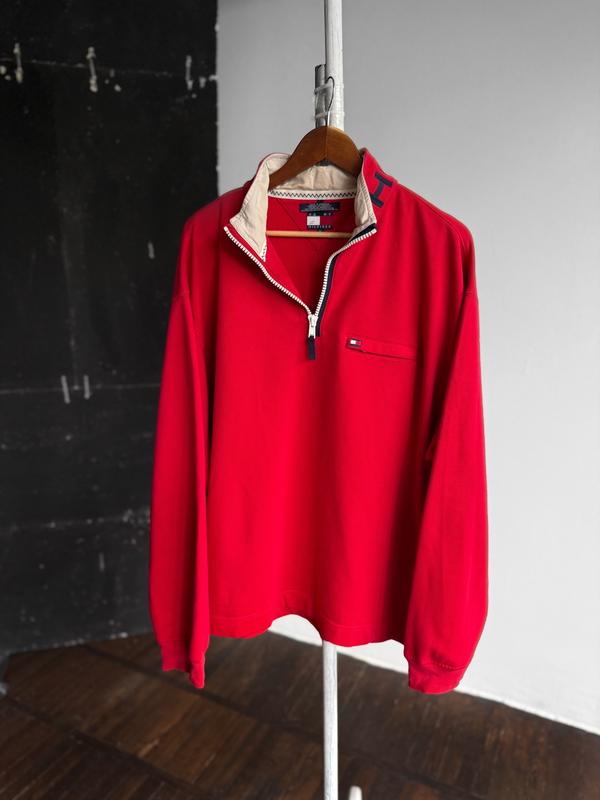 Tommy hilfiger mens red vintage half zip pullover sweater knit ls чоловіча кофта, светр