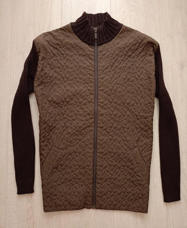 Светр чоловічий VD ONE На молнії з карманами Матеріал 50% бавовна і 50% акріл Розмір L але підійде і для М Добре підходить до брюк Матеріал вказаний на фото Тканина тягнеться Стан дуже хороший Всі виміри є теж на фото Колір коричневий Виміри Довжина по спині 69 см. Плечі 48 см. Напівобхват під рукавами 43 см. Рукав 61 см.