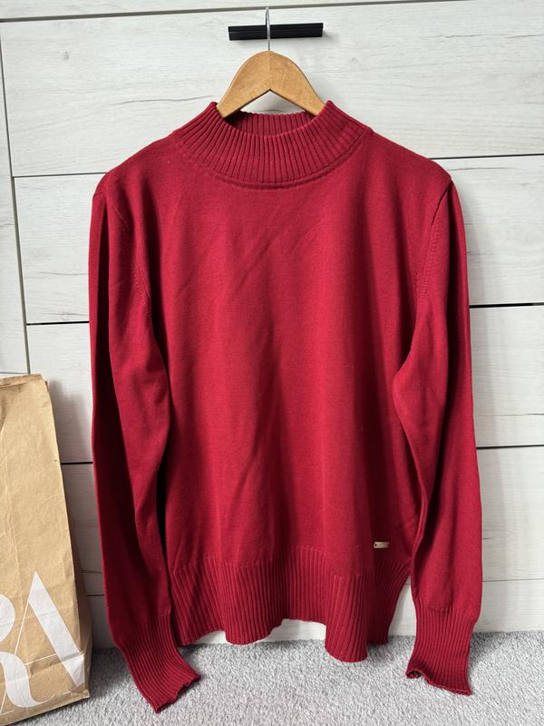 Чоловічій красивий червоний гольф під горло від бренду Delmod.У складі 60 % натуральна вовна.Тоненький та теплий.Розмір Л.Стан відмінний.Нова,Укрпошта