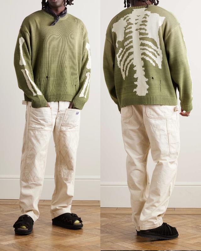 Светр зістарений рваний зв'язаний методом інтарсії з кісточками скелета на спині та рукава...