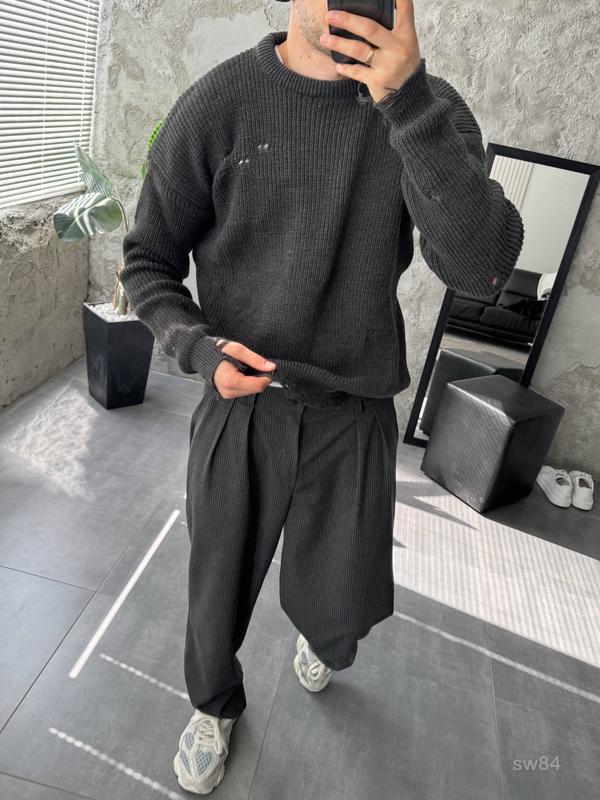 Стильний чоловічий светр на зиму-осінь у сірому у графітовому кольорі якісного матеріалу