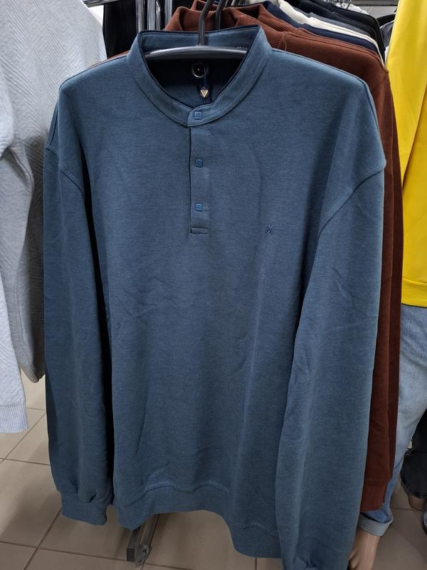 Чоловічий теплий светр у синьому кольорі. У великих розмірах: 6XL. Комір: стійка. Тканина: селанік-велюр