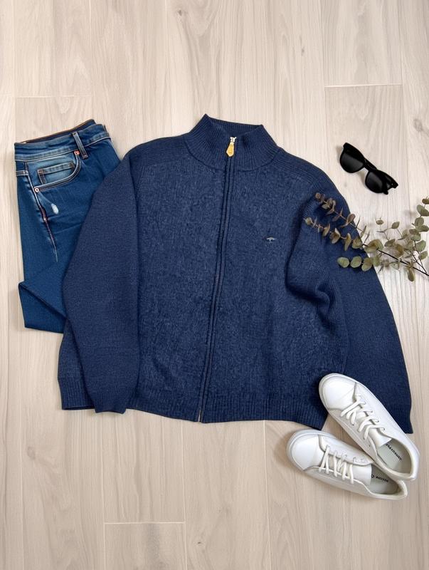 Чоловічий кардиган Fynch-Hatton 💙 Класичний дизайн з блискавкою, коміром-стійкою та невеликою нашивкою з логотипом на рукаві. Виготовлений зі 100% екстратонкої мериносової вовни — м’який, приємний до тіла, не колеться. Ідеальний для офісу, подорожей або повсякденного стилю. 📏 Розмір: L 📐 Довжина: 68 см 📏 Ширина під пахвами: 61 см 🧵 Матеріал: 100% екстратонка мериносова вовна 💫 Стан: чудовий 📩 Пишіть у особисті повідомлення для замовлень або через кнопку Купити 👉 Підписуйтесь, щоб бути в курсі нових надходжень 💕 💫 Перегляньте інші мої оголошення — багато стильного якісного одягу!