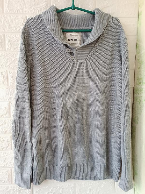 дуже гарний чоловічий светр сірого кольору в розмірі 2xl, довжина 70, пів обхват грудей 58, плечі 45, довжина рукава 65.