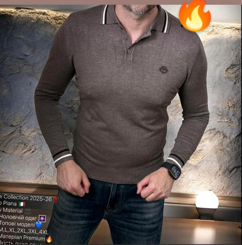 Светр чоловічий люкс із коміром на ґудзиках, тонкий ошатний