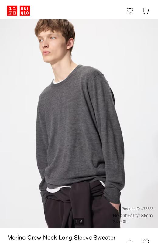 Светр вовняний uniqlo з круглим вирізом і довгими рукавами з вовни лонгслів