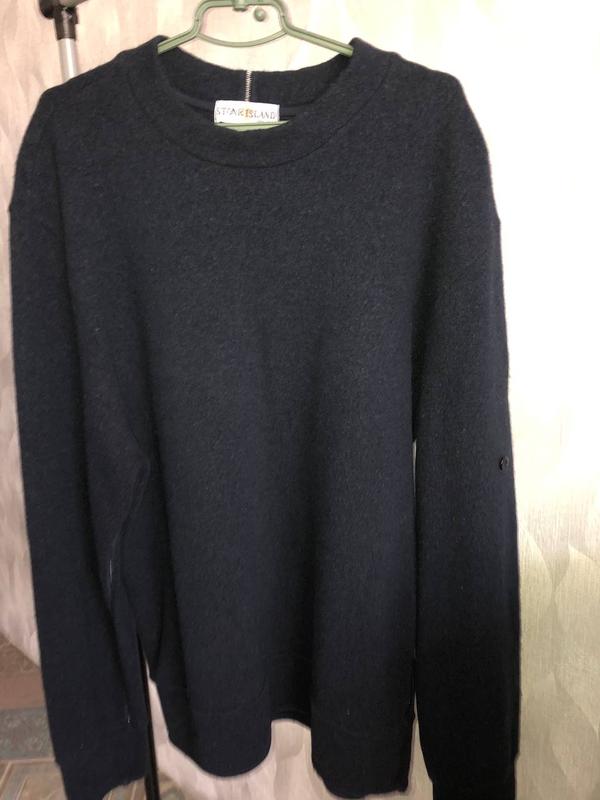 светр stone island, синій, без патча, шерсть, не збитий, розмір XL, нижня бирка запрана, є ковтуни, потертості зносу такані на манжетах рукава, плечі 52 см, пахви 58 см, рукав 66 см, довжина 68 см
