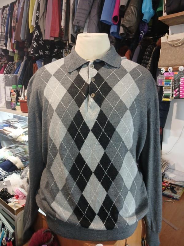 чоловічий светр - поло TADDY'D Milano з візерунком "аргайл" сірого кольору. 50% шерсть 50% акрил. розмір XXL довжина 76 см плечі 58 см рукав 72 см пл груди 72 см 20/15