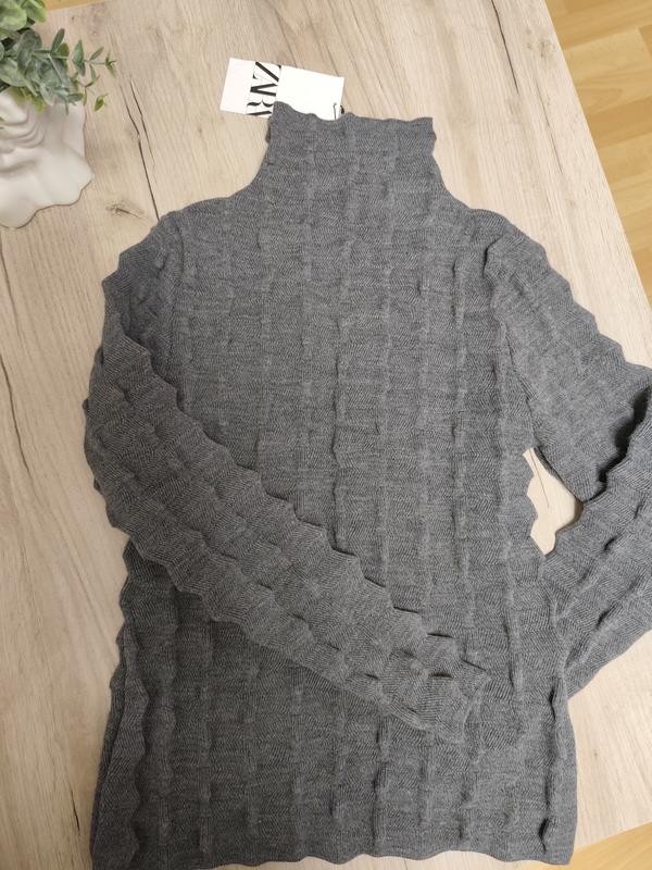 Новый свитер Zara в сером цвете. С интересным узором. Стильный выбор для любого случая. Размер S. Новый с бирками. Состав 100% акрил. Пог 40 см Длина по центру спины 60 см Цена 900 грн.
